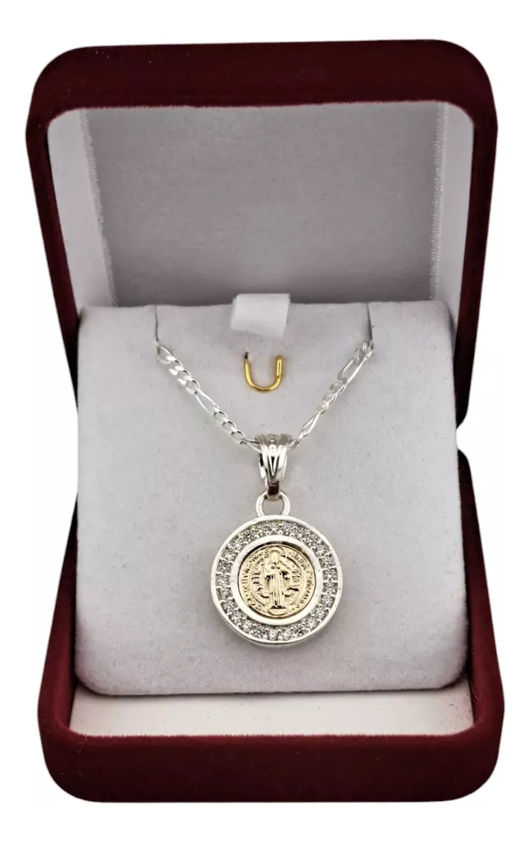 Medalla San Benito Plata 925 Oro 14k Circones Cadena Mujer Figaro