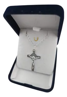 Colgante Cruz San Benito Plata 925 Con Cadena Plata Italiana Hombre Clasica De 60 Cm