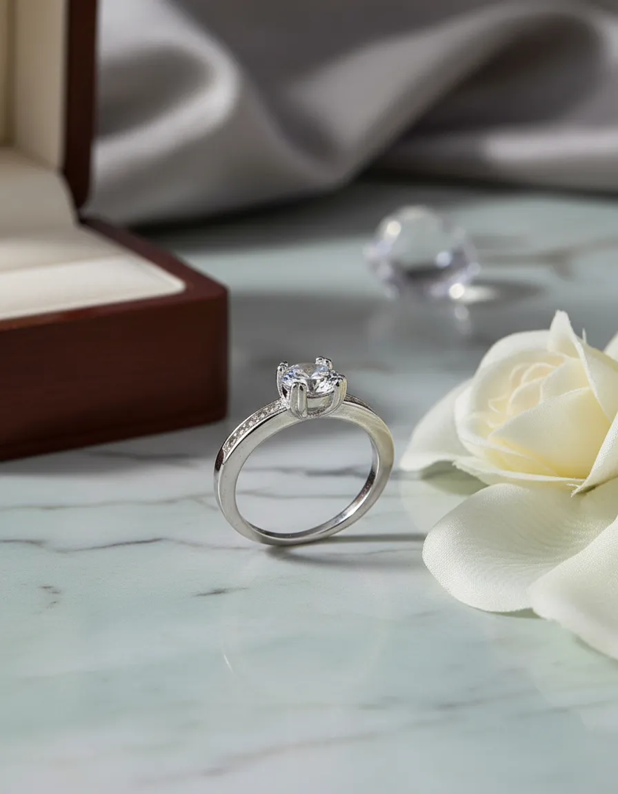 Celebra el amor eterno con este exquisito Anillo Solitario de Compromiso. Fabricado en Italia con la más pura Plata de Ley 925, esta joya combina la sofisticación del diseño clásico con detalles modernos que capturan la luz desde todos los ángulos.