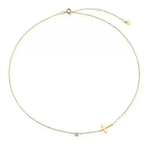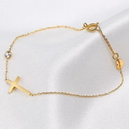 Realza tu estilo con este hermoso set de collar y pulsera de la línea moderna de Bazyli. Diseñado con un sofisticado motivo de Cruz y un acabado brillante en baño de oro, este conjunto es el equilibrio perfecto entre espiritualidad y moda contemporánea.