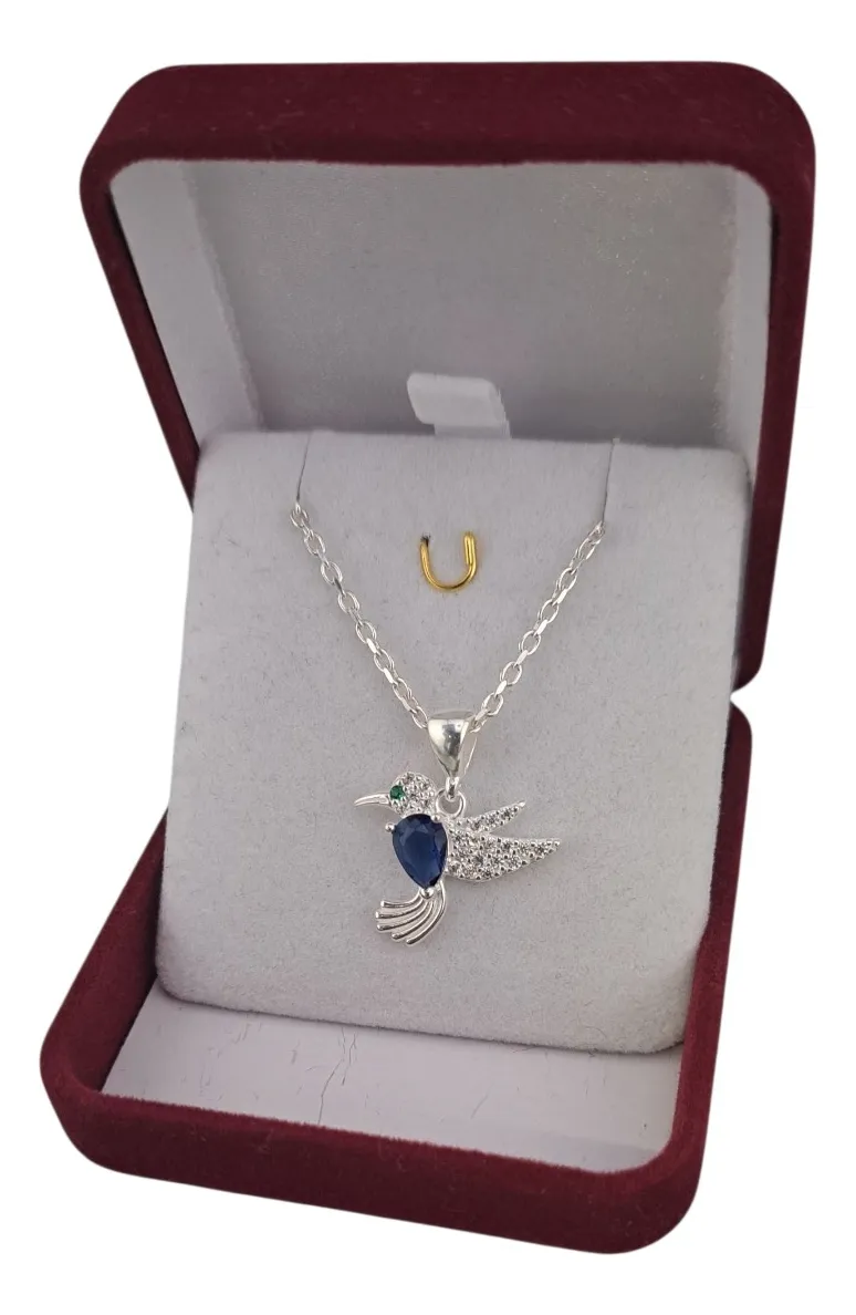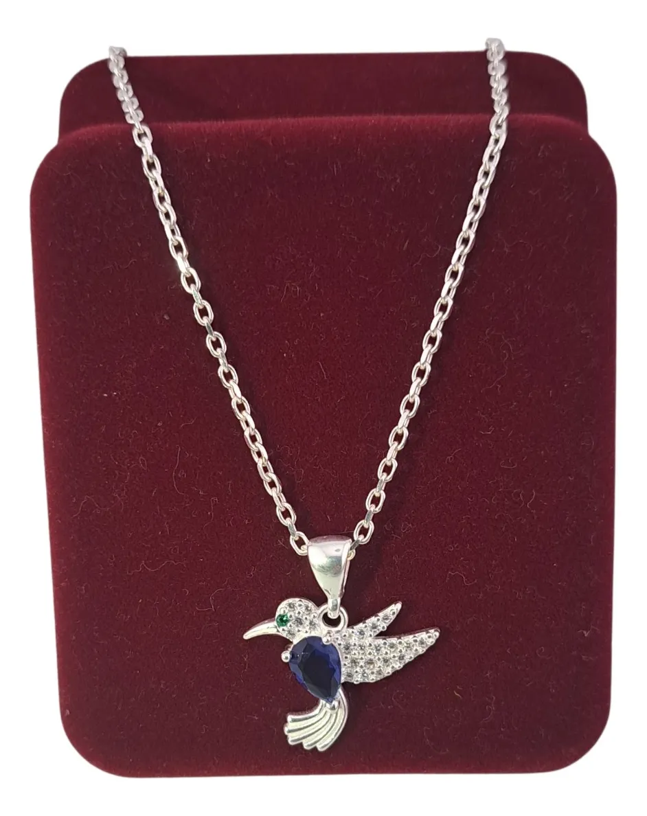 Colgante Colibri Plata 925 Cristal + Cadena Turbillon Mujer